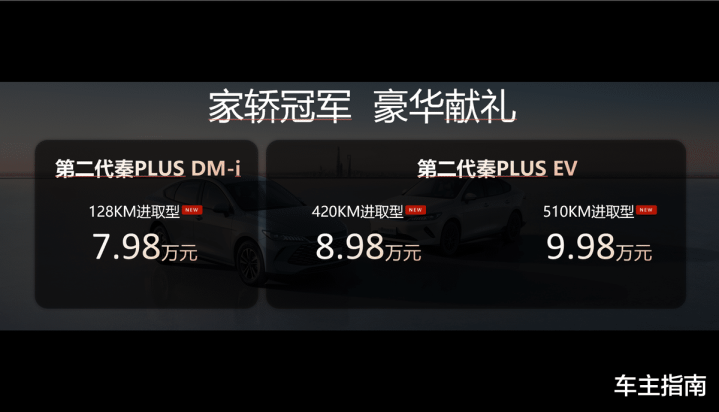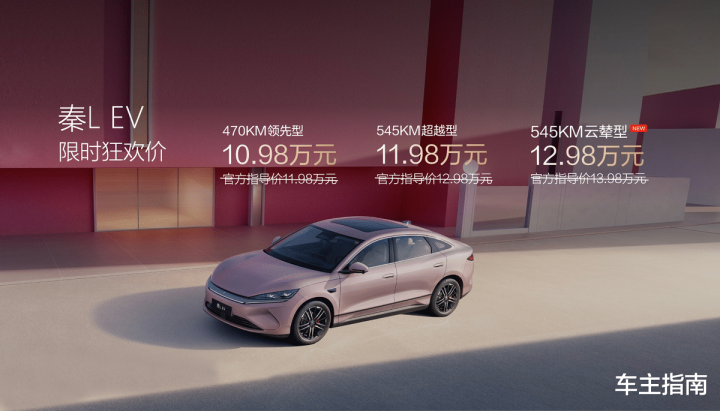 2025年10月17日,比亚迪王朝网“进取加推 粤领新程”第二代秦PLUS、秦L EV上新加推发布会在广州隆重举行,价格方面,第二代秦PLUS DM-i 128KM进取型售价7.98万元,EV 420KM/510KM进取型分别为8.98万元和9.98万元;秦L EV限时狂欢价低至10.98万元起,顶配云辇型为12.98万元,并同步推出五重购车礼遇,诚意十足。