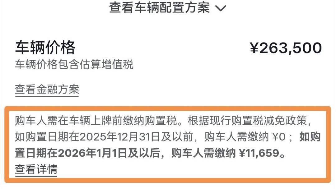 第二点,自然是压力最大的,新能源车购置税补贴将在2026年和2027年退坡至减半征收,特斯拉在9月29日就开始更新了官网的信息,在每台车的价格计算下方写上了“2026年购买要多交1.16万元”的信息提示。