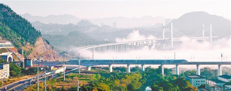 r飞虹越黔山,奔驰的列车打开了黔西南对外开放的新通道,也为贵州高质量发展注入了新的活力。(王新伟 吴秉泽)