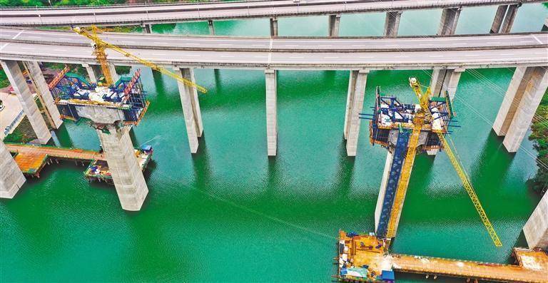 盘兴铁路纳怀河特大桥施工现场。盘兴高铁沿线山高谷深,施工难度极大(摄于2022年5月26日)。刘朝富摄(中经视觉)