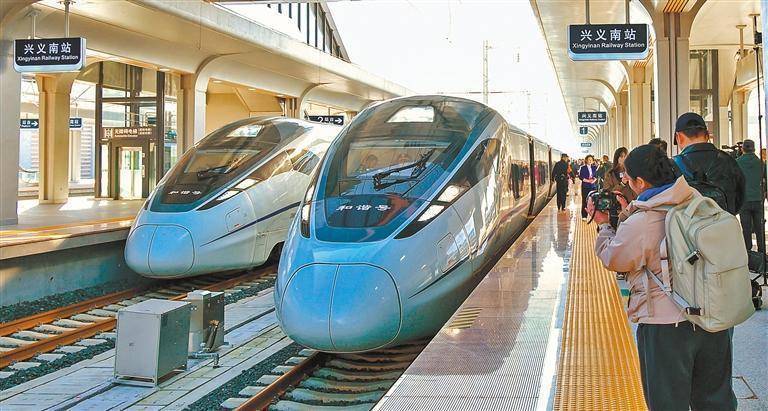 r11月28日,新建贵州盘州至兴义高铁(以下简称“盘兴高铁”)正式通车运营。这标志着贵州成为西南地区首个实现市(州)中心城市高铁全覆盖的省份,正式形成省会贵阳至省内8个市(州)中心城市1小时至2小时高铁交通圈。